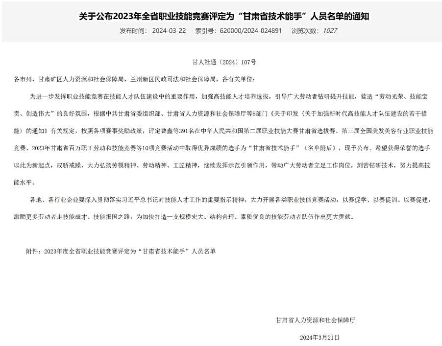 【喜报】电气工程学院4名教师、1名学子被评定为2023年“甘肃省技术能手”