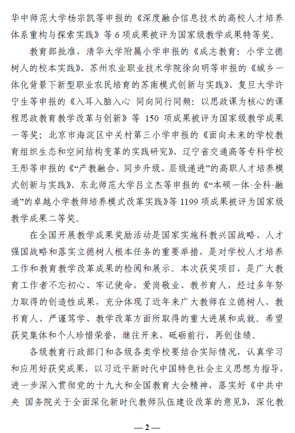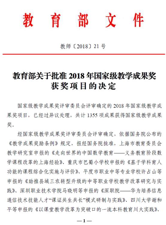 国家级教学成果奖是按照《教学成果奖励条例》设立、特等奖由国务院批准的教育教学研究和实践领域最高奖,每四年评审一次。从1989年在全国普通高校开展优秀教学成果评奖,到2014年首次开展覆盖各级各类教育的国家级教学成果奖评审,受到了广大教育工作者的高度关注和肯定。