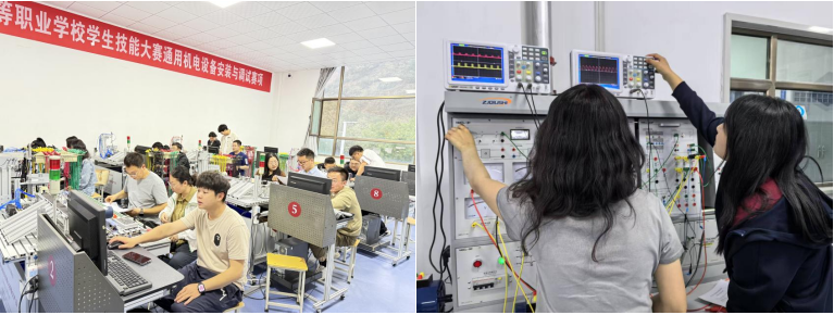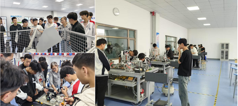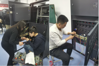 在实训基地实践区,实训室指导教师通过“理论讲解+实操示范”的方式,带领师生们从电路设计、设备组装到故障排查,全流程体验电气行业一线岗位的核心技能。