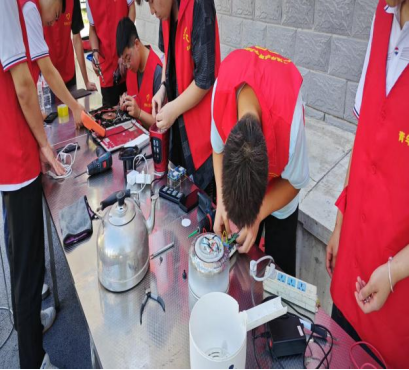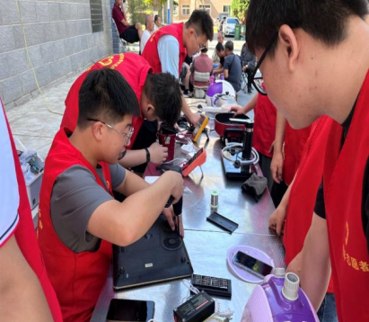 为全面贯彻落实乡村振兴战略,促进农村文化建设,服务城乡居民生活,同时响应学校大学生“三下乡”社会实践活动号召,提高青年大学生的综合素质,提升当代青年大学生的奉献精神。电气工程学院家电维修社团在西十里社区的大力支持和帮助下,由电气工程学院团总支张弟弟和指导老师安国昊带队,于7月3日赴甘肃省天水市秦州区二一三厂家属院,开展志愿者暑期文化科技卫生“三下乡”社会实践活动。