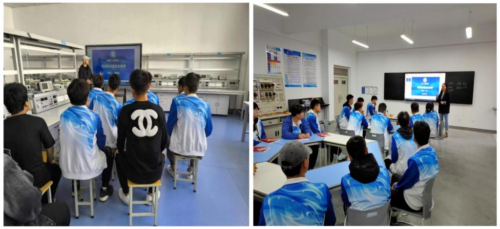 王晓丽和陈晓老师结合各实训室特点,重点讲解了用电安全知识,实训前要了解操作规程、检查实训环境、制定应急预案。要求学生在实训过程中要遵守操作规程、严禁脱岗,险情发生时要保持镇定,根据险情大小采取正确的处理方法。
