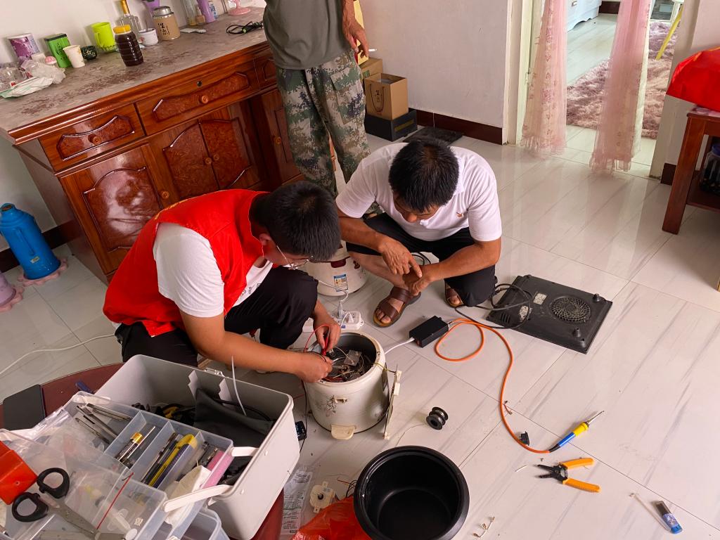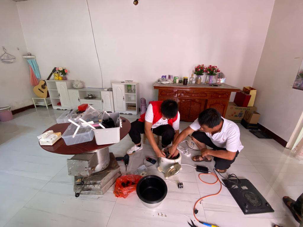 通过前期学院工会与帮扶村多次沟通与联系,共收集近百件家用电器。家电维修社团成员到达帮扶村后立刻就开展维修工作,对于不便搬运的家电,社团成员们不辞辛苦,深入居民家中进行维修。在维修过程中,社团成员也向居民们宣讲安全用电和节约用电相关知识,详细讲解家电损坏的原因,提醒大家要通过正规渠道购买家用电器。