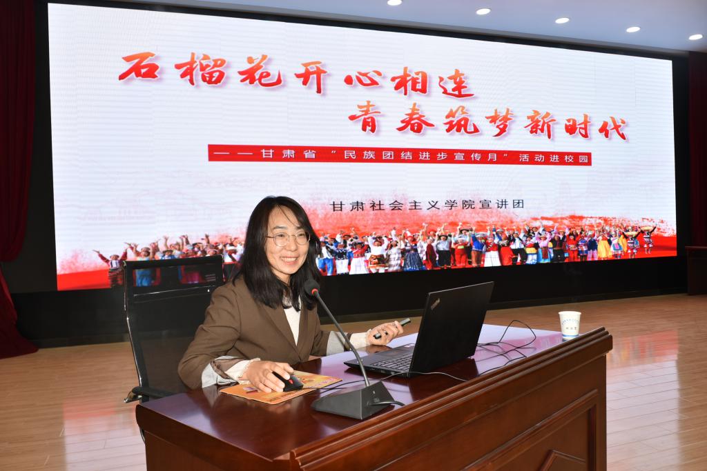 在全省第20个民族团结进步宣传月活动启动之际,为组织实施好宣传月活动,有形有感有效开展铸牢中华民族共同体意识宣传教育,受党委统战部委托,电气工程学院党总支邀请甘肃省委统战部民族团结进校园宣讲团成员、甘肃社会主义学院马霞副教授,来校做题为《石榴花开心相连 青春筑梦新时代》民族团结进步主题讲座。