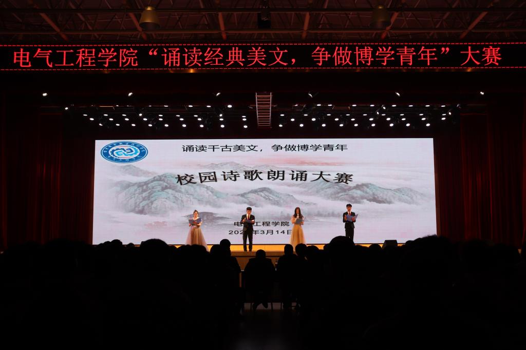 为深入推进中华优秀传统文化全方位融入教育教学管理,创新传承中华优秀传统文化,进一步增强文化自觉和文化自信,3月14日晚,电气工程学院在南区大礼堂举办“诵读经典美文,争做博学青年”诵读大赛。电气工程学院党总支书记闫坤伦、党总支副书记学生支部书记高强、马克思主义学院副院长史维波、基础课教学部张洁敏老师和全体辅导员、班主任参加大赛。