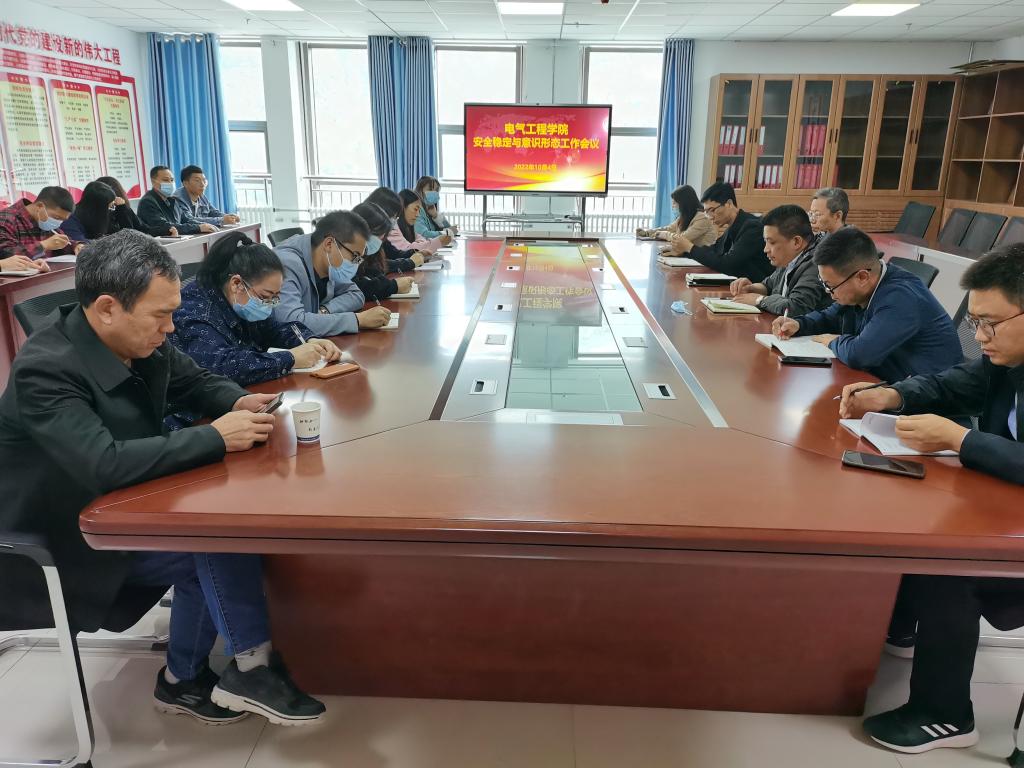 为贯彻落实学校意识形态和安全稳定工作要求,10月4日下午,电气工程学院召开2022年第三季度意识形态和安全稳定形势专题工作会议。学院党总支书记闫坤伦主持会议。