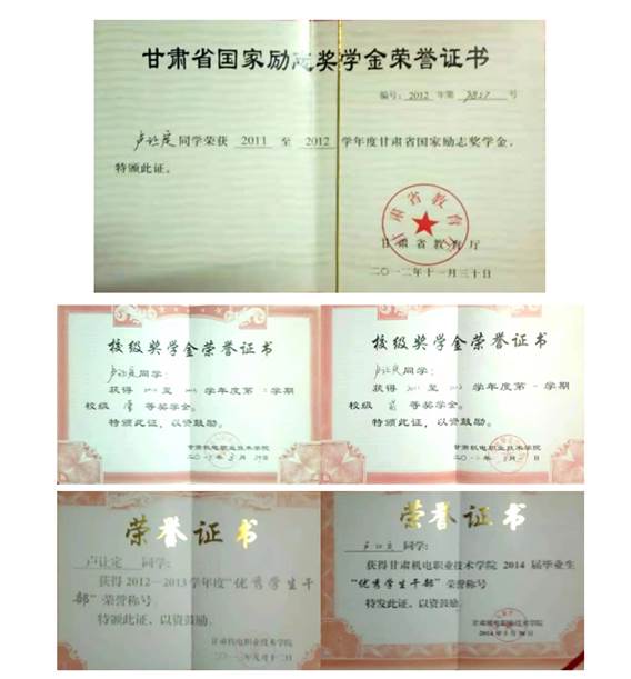 天行健,君予以自强不息。做个合格的大学生并不简单,做到优秀更是不易!卢让定始终谨记学习天职,不甘落后,积极进取,努力学习。他努力协调学习与工作的关系,不但认真完成课内学习任务,并且参加各类学科竞赛。在不断的学习中,他的个人素质得到了稳步提升,工作能力也有了相应的进步。大学三年,他的生活过得忙而不乱,紧而不烦。他的专业成绩一直名列前茅,大一到大二连续国家励志奖学金、校级一等奖学金。