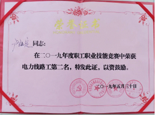 全路技术能手西宁供电段卢让定 ,“爱岗敬业”,用这个词形容卢让定毫不为过。2014年,他踏上铁路成为一名电力线路工,每天面对十几米高的水泥电杆,无论冬夏,用脚扣和皮带一次次上下攀爬丈量。从最初的胆怯恐惧,到战战兢兢地反复练习,再到从容淡定、上下自如地在高空操作,那一条条磨烂的工作裤,那一件件袖口磨损露出线头的毛衣,记载了他的坚持和艰辛。不出半年,他已经成为工区的一名检修干将。谈起技术创新,卢让定总是津津乐道。此前作业中,传统的紧线器在使用中存在钢丝绳伸长距离不够、钢丝卡线、使用笨重等弊端。经过揣摩,他发明一种新型的手板葫芦,将传统紧线器的卡线金属头牢固加装在新式手板葫芦上,巧妙弥补了紧线器的先天缺陷,工作效率大幅提升。2020年疫情之初,集团公司准备向武汉铁路局集团公司捐赠物资,卢让定毫不犹豫报名加入到疫区物资搬运队伍当中,在疫情防控一线锻炼自己。经组织严格考验,7月份,他成为一名光荣的共产党员。参加工作至今,卢让定先后获得集团公司党员技术标兵、青年岗位能手、全路技术能手、全国铁路青年科技创新奖等多项荣誉,用自己的实际行动诠释了爱岗敬业的真谛。