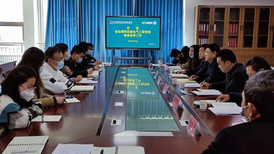 2022年4月5日上午,学院党委副书记 院长赵彦军、党委委员副院长张德龙带领组织部、办公室、教务处、质量管理处、学生处、招生就业处等相关部门,深入电气工程学院调研指导工作。电气工程学院中层干部、教研室主任、专业负责人、教师代表、学生代表参加会议。