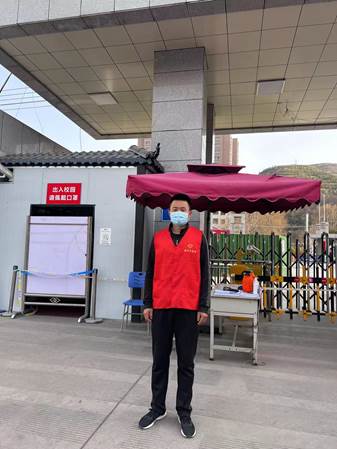 在疫情面前,只能挺身在前、逆行而上。战役还在继续,正是因为有像王欢老师这样坚守一线岗位“负重前行”的人,才能打赢疫情防控阻击战,守护好同学们的健康安全!