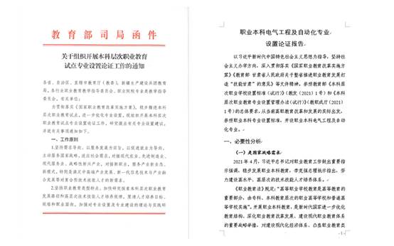 完成“电气工程及自动化”专业本科层次职业教育论证申报