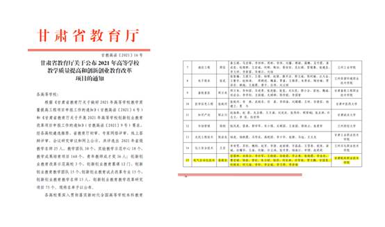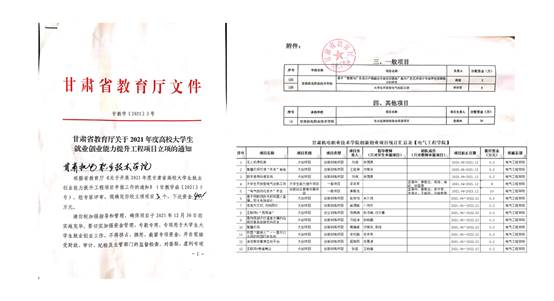 党委书记坚葆林主持的“布点监测高校就业推进项目”和电气工程学院院长助理李许军主持的“大学生开放型电气创新工坊”获批2021年甘肃省大学生就业创业能力提升工程项目。