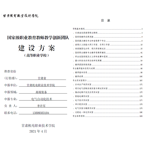 以院长助理李许军副教授为牵头人,完成申报国家级职业教育创新团队建设方案。
