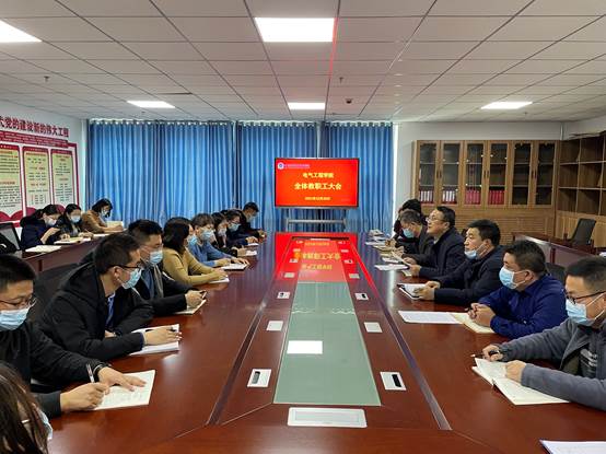 2021年12月28日下午,电气工程学院召开全体教职工大会。学院党委书记坚葆林出席会议并讲话,电气工程学院全体教师、辅导员参加会议。