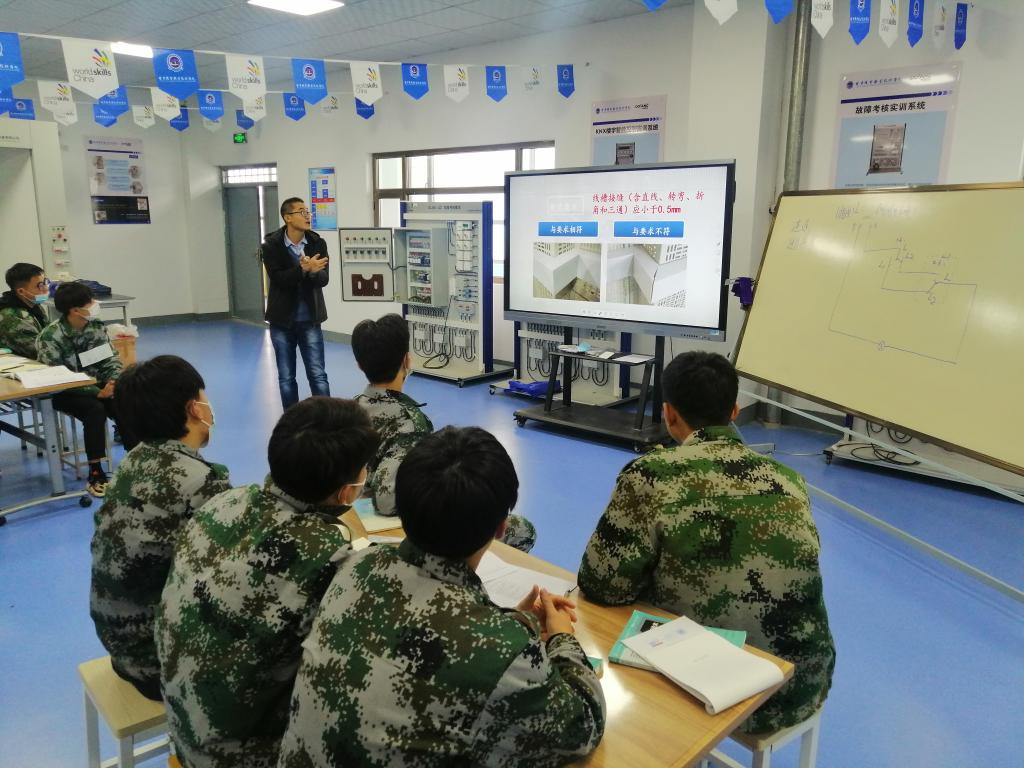 为提高教师队伍建设,夯实实训教学基础,按照教务处和我院“教学质量月”活动方案,电气工程学院在第16周组织了中青年教师教学公开课活动。2021年12月9日上午,我院青年教师、电力系统自动化技术专业负责人贾文鹏老师,在3号实训楼电气安装实训中心进行了“电工技术实训”现场公开教学。教务处处长孙永忠、副处长马政、纪检监察室主任杜建霞、校级督导专员曹文煜、赵峻、于淑梅老师及电气工程学院班子成员、部分教师现场听课。