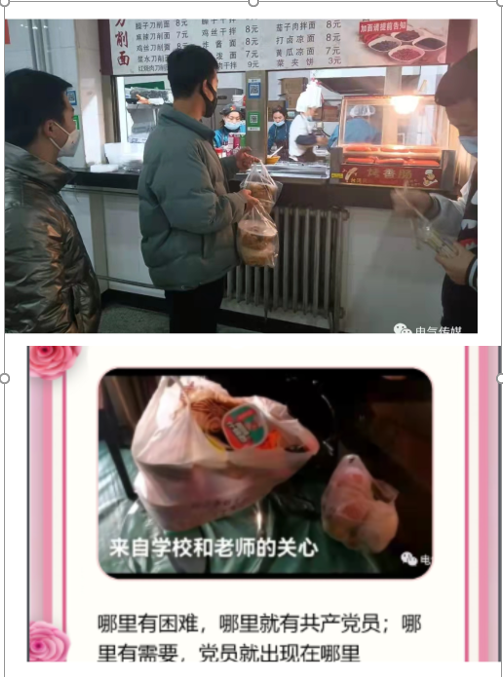 在这场没有硝烟的战争中,电气工程系党总支除了做好日常党员值班外,系部领导、一线教师和学生党员还主动出击,参加了学生公寓“包楼包层”物资供应与志愿服务活动。电气工程系党总支广大党员和一线教师以强烈的政治责任感推进疫情防控工作有序开展,展现出了新时代共产党员的政治本色和精神风貌,广大师生用实际行动践行了“让党旗在疫情防控一线高高飘扬”的庄严承诺。
