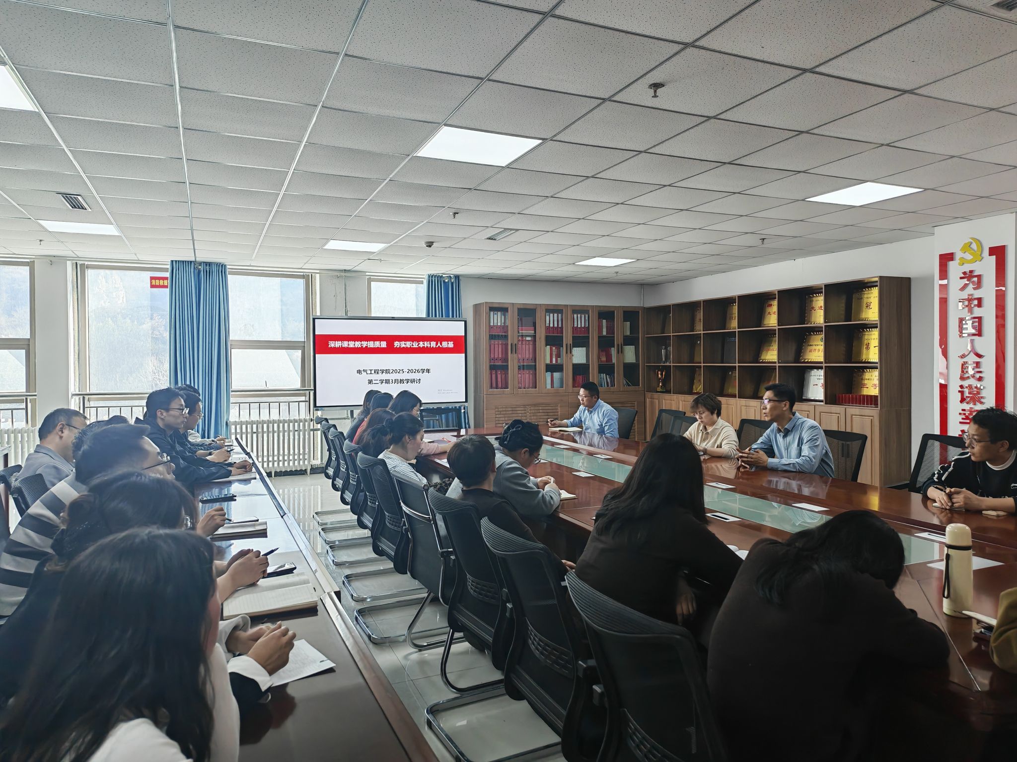 2026年3月11日下午4点,电气工程学院召开2025-2026学年3月份教学研讨会,院长李许军主持,副院长曹宏娟、各专业负责人及全体专兼职教师参会。