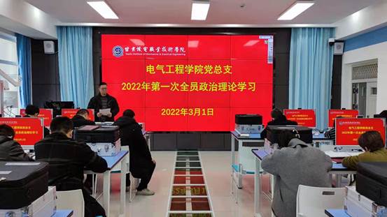 3月1日下午,按照学院党委工作部署,结合《2022年教职工政治理论与业务学习计划》,电气工程学院党总支召集所属部门全体教职工,召开2022年第一次全员政治理论学习会。