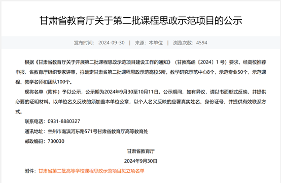 近期,甘肃省教育厅公布2024年省高职院校第二批课程思政示范项目,我院电气自动化技术专业获批省级第二批“课程思政示范专业”建设项目。