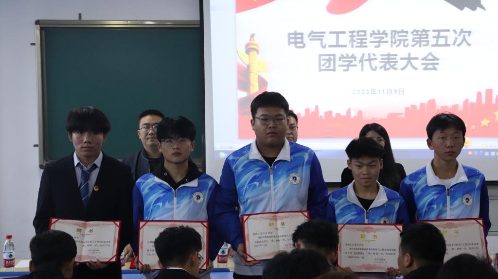 为进一步加强团学组织建设,落实社会主义核心价值观的具体要求,优化团学干部队伍结构,强化团学干部自我教育、自我管理、自我服务、自我监督的意识,动员和组织学生积极参与学院发展建设。2023年11月9日,电气工程学院组织召开第五次团员代表大会暨学生代表大会。电气工程学院党总支副书记高强、学生管理干事何长林、团总支书记张弟弟及团学代表参加会议。