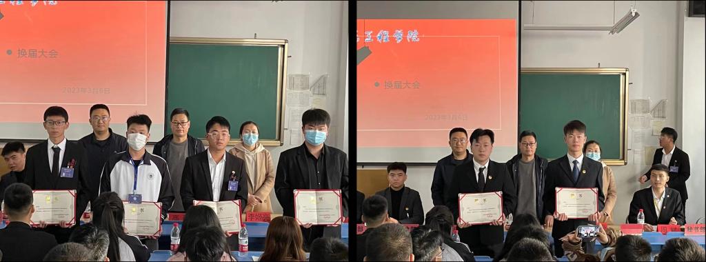 会上,团总支书记李姬亮老师宣读了新一届团总支、学生会各部门负责人聘任通知,与会领导为本届学生会主席团、各部门、社团负责人颁发了聘书。学生会主席团成员何国帅、李琳德、穆希晔首先做表态发言,新聘任的部门和社团负责人依次向大会做了新学期工作计划汇报。学生干部纷纷表示:将带头深入学习贯彻党的二十大精神,落实学校和学院学期工作要点,牢记为学生成长成才服务、为学校发展服务的职责使命,积极主动融入学校发展,为广大青年学子当好表率、做好示范。