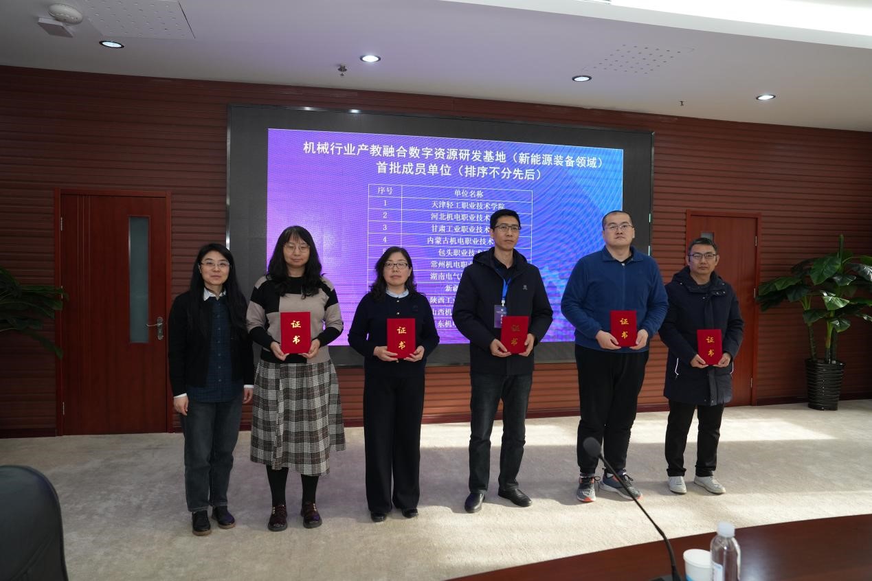 128日,机械行业产教融合数字资源研发基地(新能源装备领域)成立大会暨机械行业职业院校课程及教材高质量发展研讨会在天津举行。本次会议由机械工业教育发展中心主办、天津轻工职业技术学院承办。我院作为学校代表,学院主要负责人陪同张德龙副校长一同参会,并共同见证学校获授为首批共建单位。