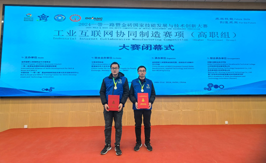 11月19日至21日,2024一带一路暨金砖国家技能发展与技术创新大赛工业互联网协同制造赛项(高职组)国内总决赛在安徽交通职业技术学院圆满落幕。电气工程学院教师贾文鹏、赵明杰凭借着扎实的专业知识、精湛的实操技能、过硬的心理素质,在激烈的竞争中脱颖而出,斩获银牌。