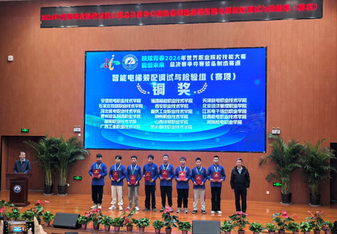 近日,2024年世界职业院校技能大赛总决赛争夺赛“装备制造赛道”和“电子与信息赛道一”赛事圆满结束。经过激烈角逐,电气工程学院参赛团队在“智能电子产品设计与开发”和“智能电梯装配调试与检验”赛项中获得铜奖。