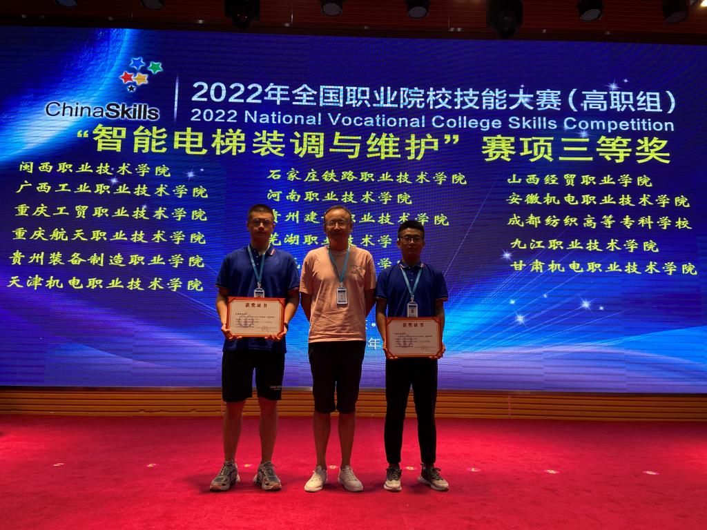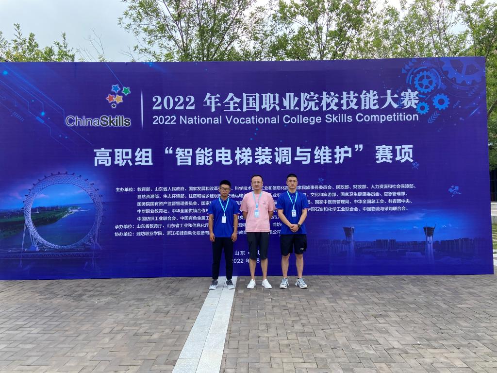 8月21日,从山东省潍坊市闭幕的2022年全国职业院校技能大赛高职组“智能电梯装调与维护”赛项现场传来喜讯,由电气工程学院伏根来、贾文鹏老师指导,王陈功、杜鑫两位同学组成的国赛参赛团队发挥出色,最终在全国27个省市的51支参赛队伍中脱颖而出,荣获团体三等奖。